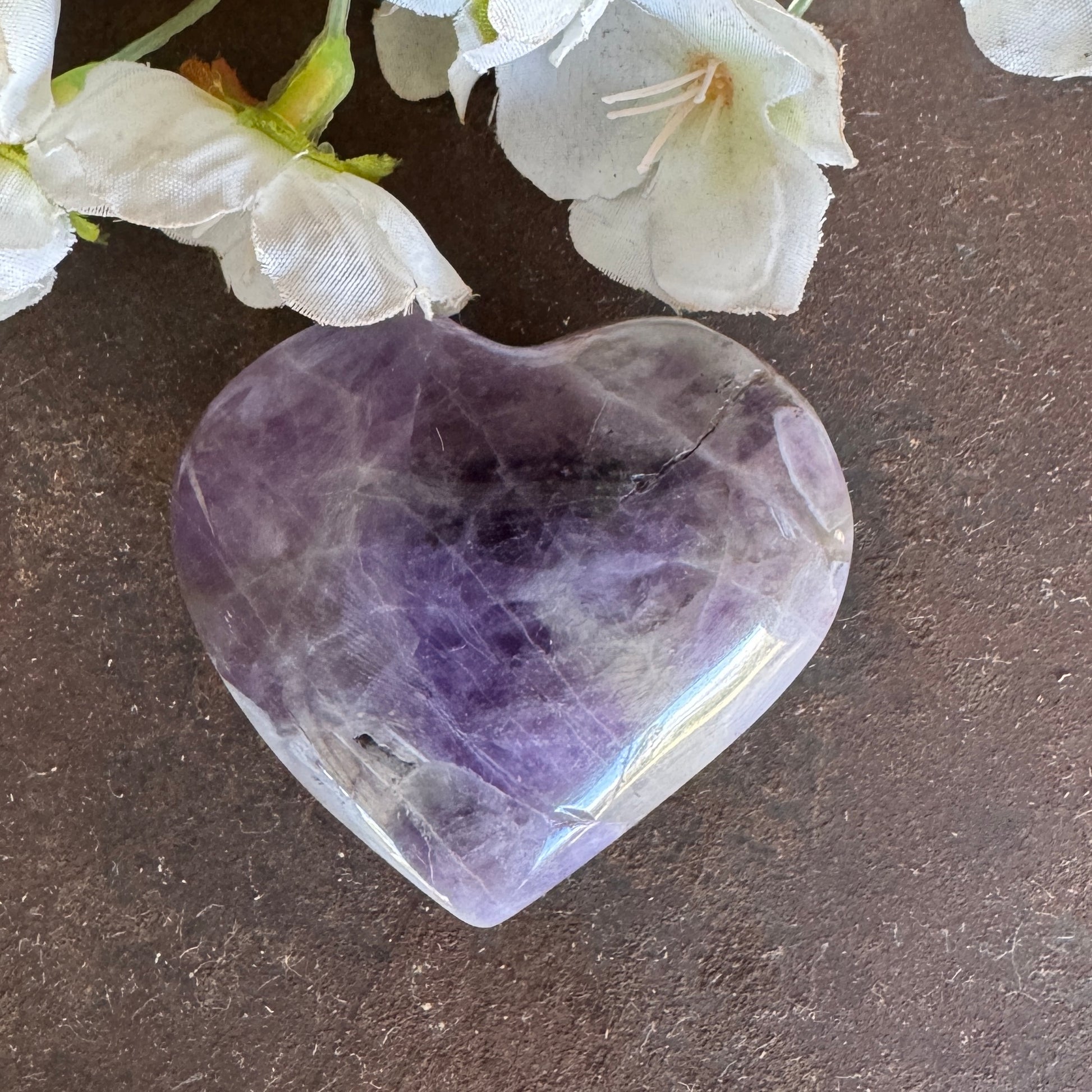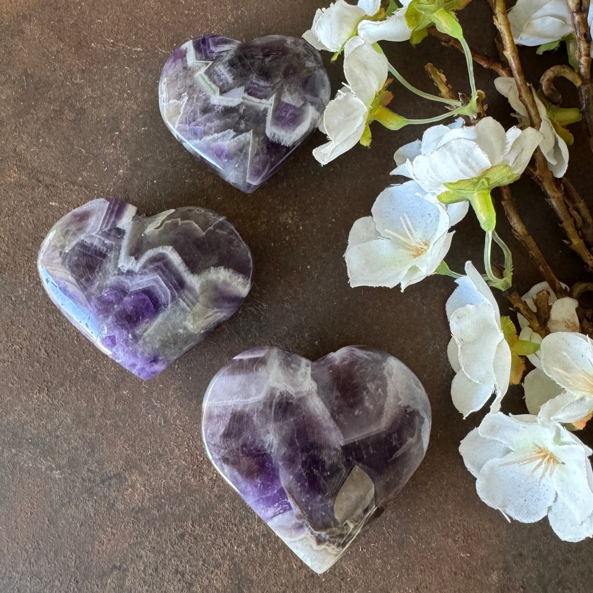 Embrace the gentle comfort and high-vibration energy of our Chevron Amethyst Crystal Hearts, also known as Amethyst Chevron Hearts or Banded Amethyst Hearts.