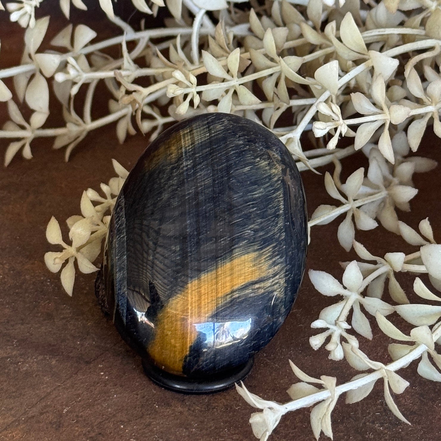 Blue Tiger’s Eye Palm Stone – Spiritual Healing, Protection & Calm Focus