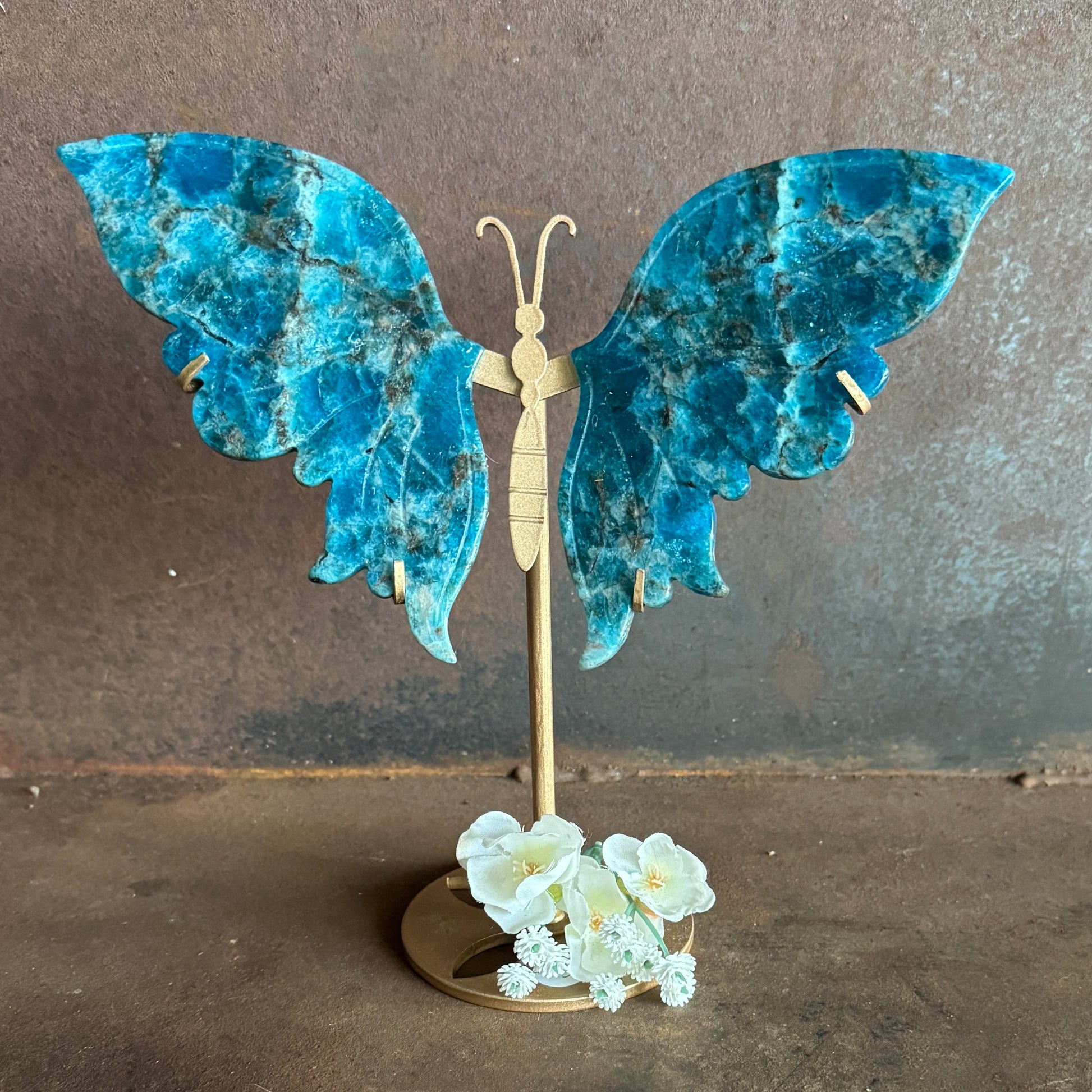 Blue Apatite Crystal Wings on Butterfly Stand (Medium Size)– Spiritual Healing, Renewal & Inspired Transformation