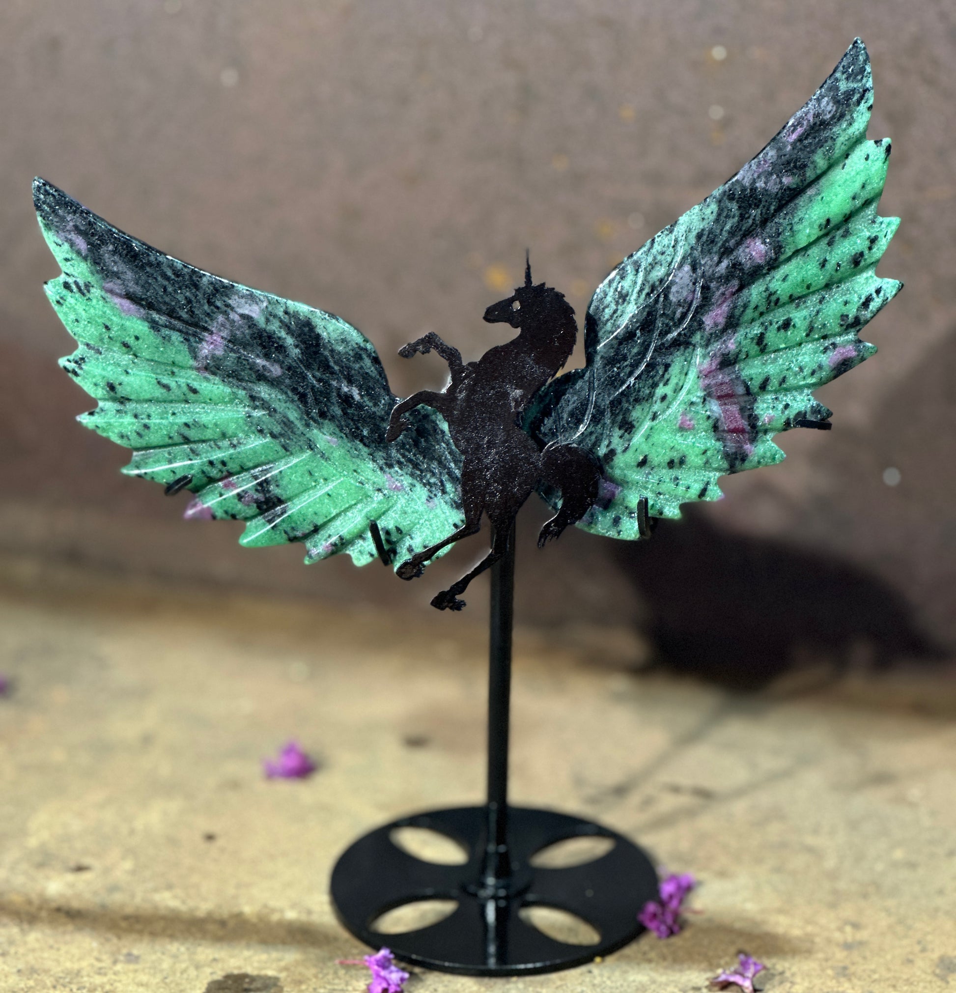 Unicorn Pegasus Stand featuring Ruby in Zoisite Wings – Transformation, Empowerment & Spiritual Awakening